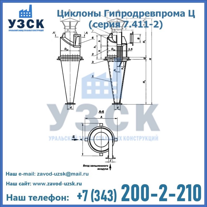 Циклоны Гипродревпрома Ц (серия 7.411-2) высокого качества можно купить в компании «УЗСК» в Благовещенске. Наши специалисты предоставят всю необходимую информацию информацию и помогут с выбором модели циклона. Подробные технические характеристики, конструкцию, параметры, ассортимент и стоимость продукции можно также найти на сайте УЗСК.